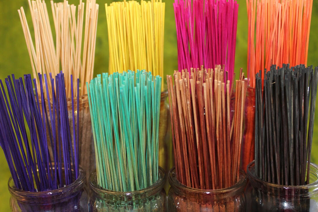 Sticks, Cones, or Sachets! We have incense such as: dragons blood, eucalyptus, sandalwood, blue moon, lavender, cherry blossom, cinnamon, citrus, sunset, etc.